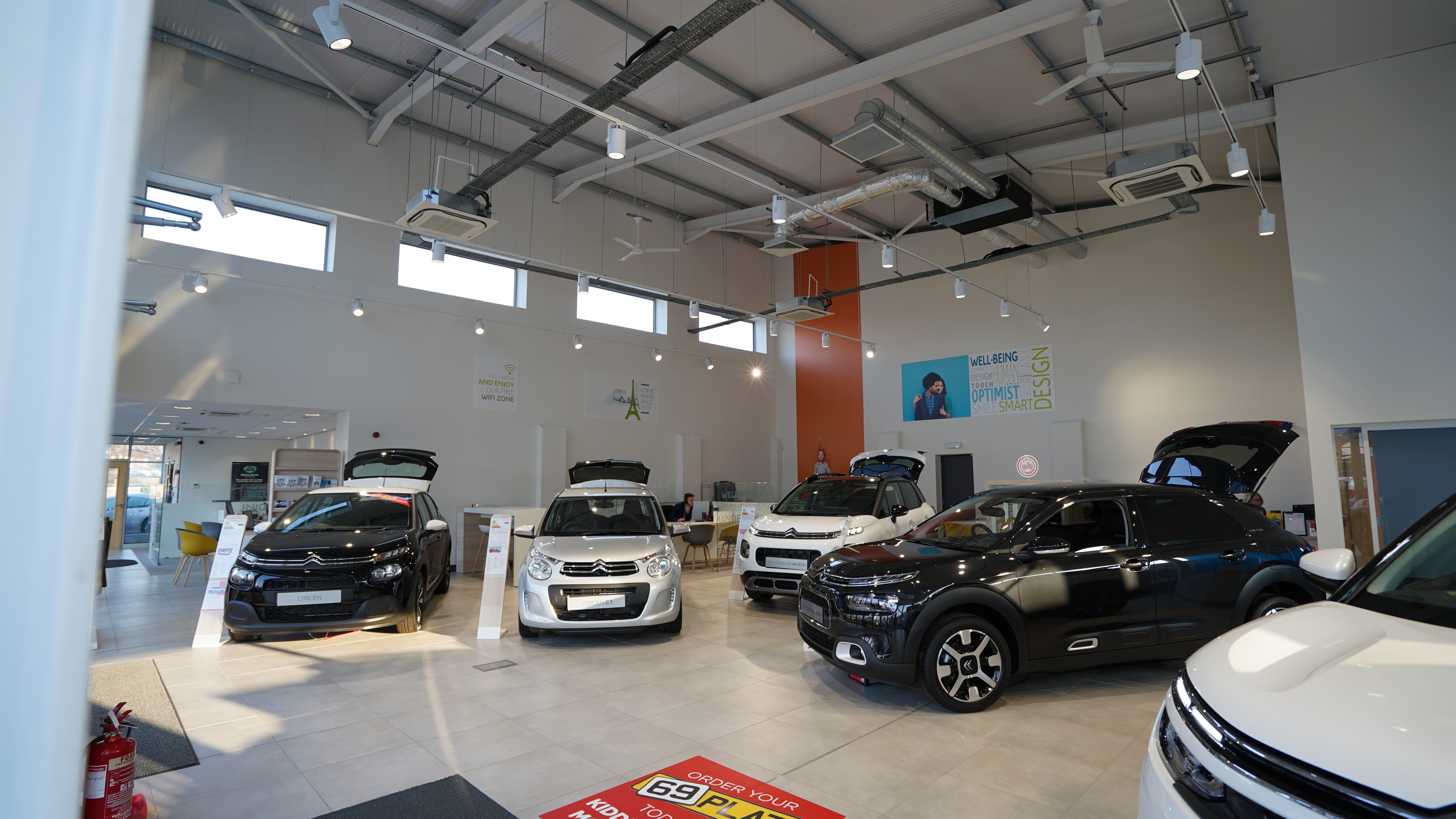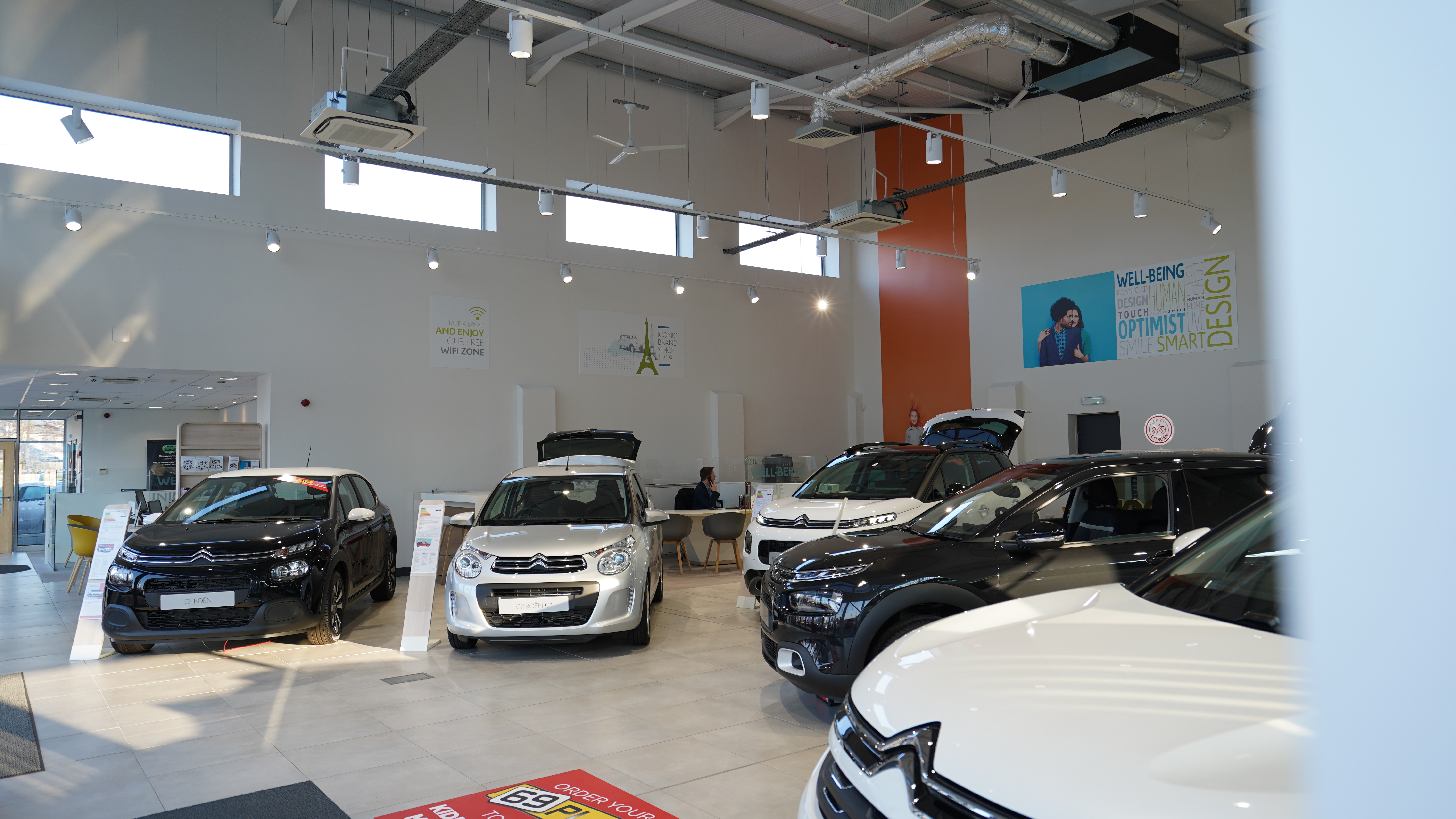 We are delighted to post a video and pictures of the works carried out at the Citroën Kidderminster Garage. We refurbed the existing showroom internally and externally which internally included installation of additional power to the floor via floor boxes to illuminate cars, new hot desks in the showroom, new floor tiles, carpets and it was also fully redecorated to suit the new corporate identity.